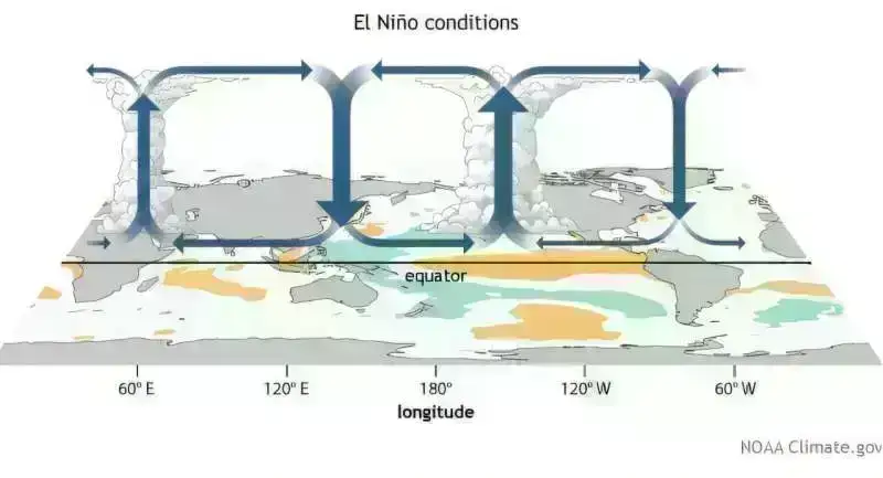 Antropogen qlobal istiləşmə dövründə El Niños 2023 və 2024-cü illərdə olduğu kimi tez-tez rekord temperaturlara səbəb olur. “Cənub rəqsi” atmosferdə baş verir və dəniz səthinin temperaturunun dəyişməsi ilə bağlıdır.