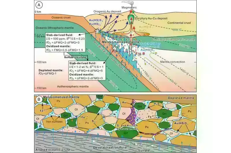 Daha çox məlumat: Deng-Yang He et al, Mantiyanın kükürdlə oksidləşməsi subduksiya zonalarında nəhəng qızıl yataqlarının əmələ gəlməsinə səbəb olur, Milli Elmlər Akademiyasının əsərləri (2024). DOI: 10.1073/pnas.2404731121