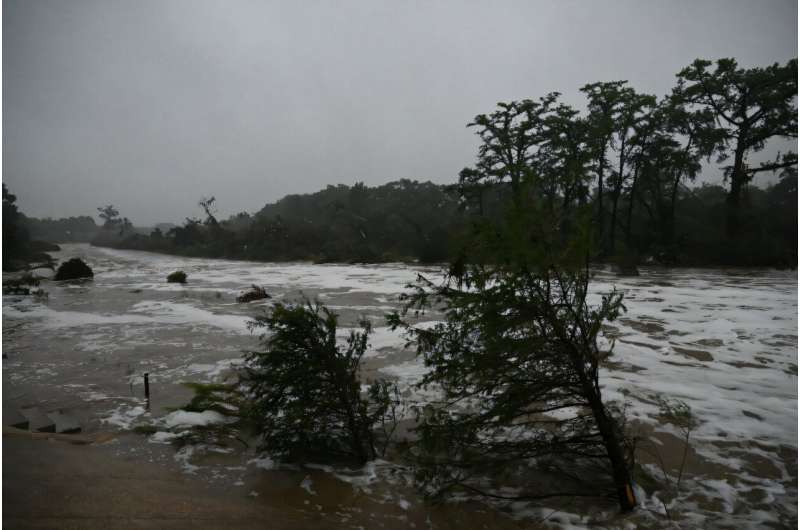 Şənbə günü Kerrvilledə adətən sakit Guadalupe sürətlə axırdı, onun bulanıq suları dağıntılarla dolu idi.