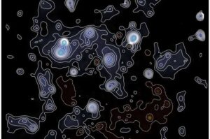 Yüksək qətnaməli xəritə qaranlıq maddənin cazibə qüvvəsinin normal maddəni qalaktikalara çəkdiyini göstərir