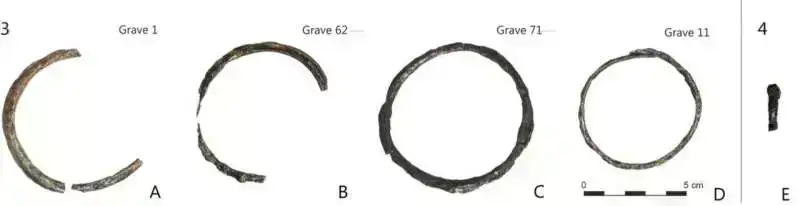 Müxtəlif qəbirlərdən bilərziklər, ayaq biləyi üzükləri, bıçaqlar, nizə ucluqları və boyunbağılar da daxil olmaqla ümumilikdə 26 dəmir əşya aşkar edilib.