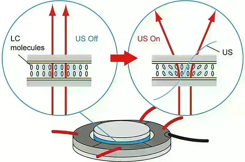 Doşişa Universitetinin Elm və Mühəndislik Fakültəsindən professor Daisuke Koyama və aspirantlar, cənab Yuma Kuroda və cənab Ryoya Mizuno yeni bir araşdırmada yenilikçi tənzimlənə bilən ultrasəs maye kristal (LC) işıq diffuzorunu inkişaf etdirdilər.