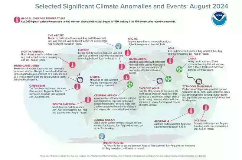 NOAA-nın 175 illik iqlim rekordunda 2024-cü ilin avqustu Yerin ən isti avqustu olub.
