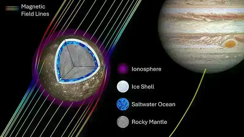 Lakin Kallistonun yeraltı okeanına dair dəlillər qeyri-müəyyən olaraq qalır, çünki ayın sıx ionosferi var . Elm adamları ayın atmosferinin bu elektrik keçirici hissəsinin duzlu, keçirici okeanın maqnit barmaq izini təqlid edə biləcəyini düşünürdülər.