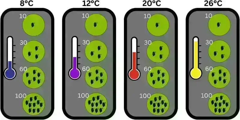Təcrübə göstərdi ki, temperatur yüksəldikcə fərdlər arasında rəqabət xeyli güclənir. Əslində, temperaturun hər 7 dərəcə Selsi artımı üçün rəqabət effektləri iki dəfə artdı və sınaqdan keçirilmiş ən yüksək temperaturda əhalinin 50% dramatik azalmasına səbəb oldu.